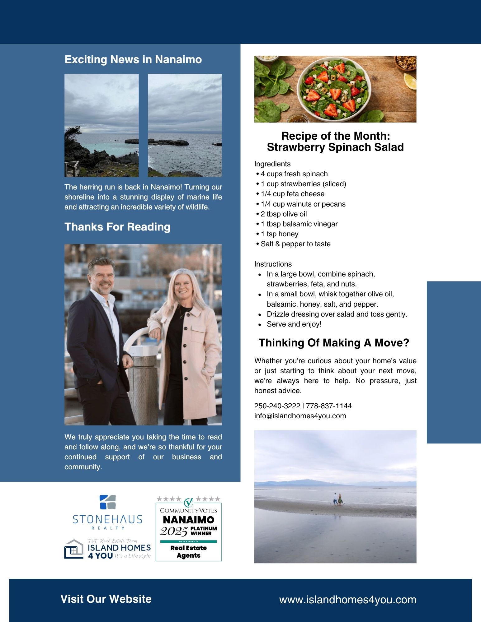 Thanks for reading our April 2026 Nanaimo real estate newsletter. We truly appreciate your support and always enjoy staying connected with our clients, friends, and community.